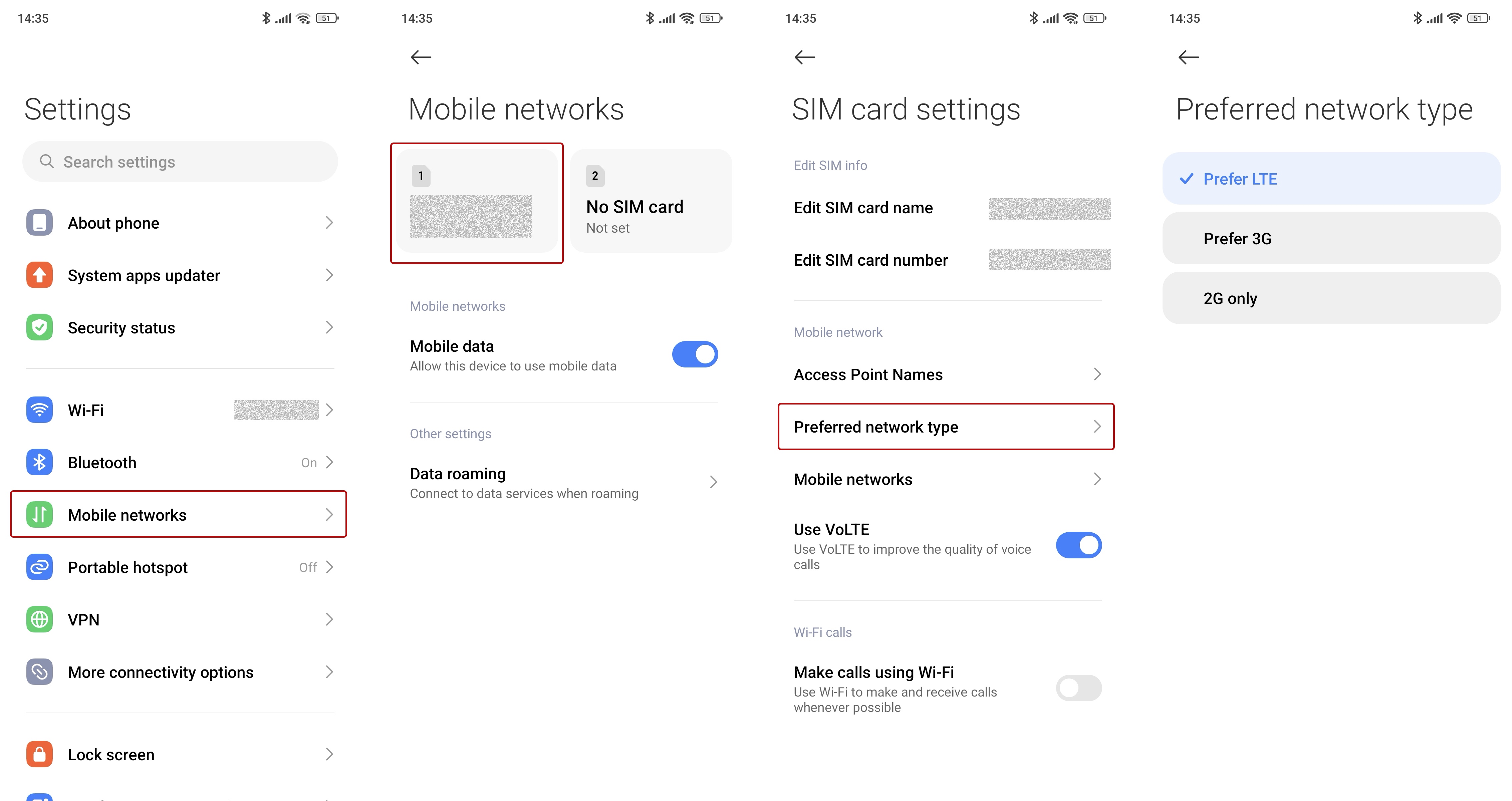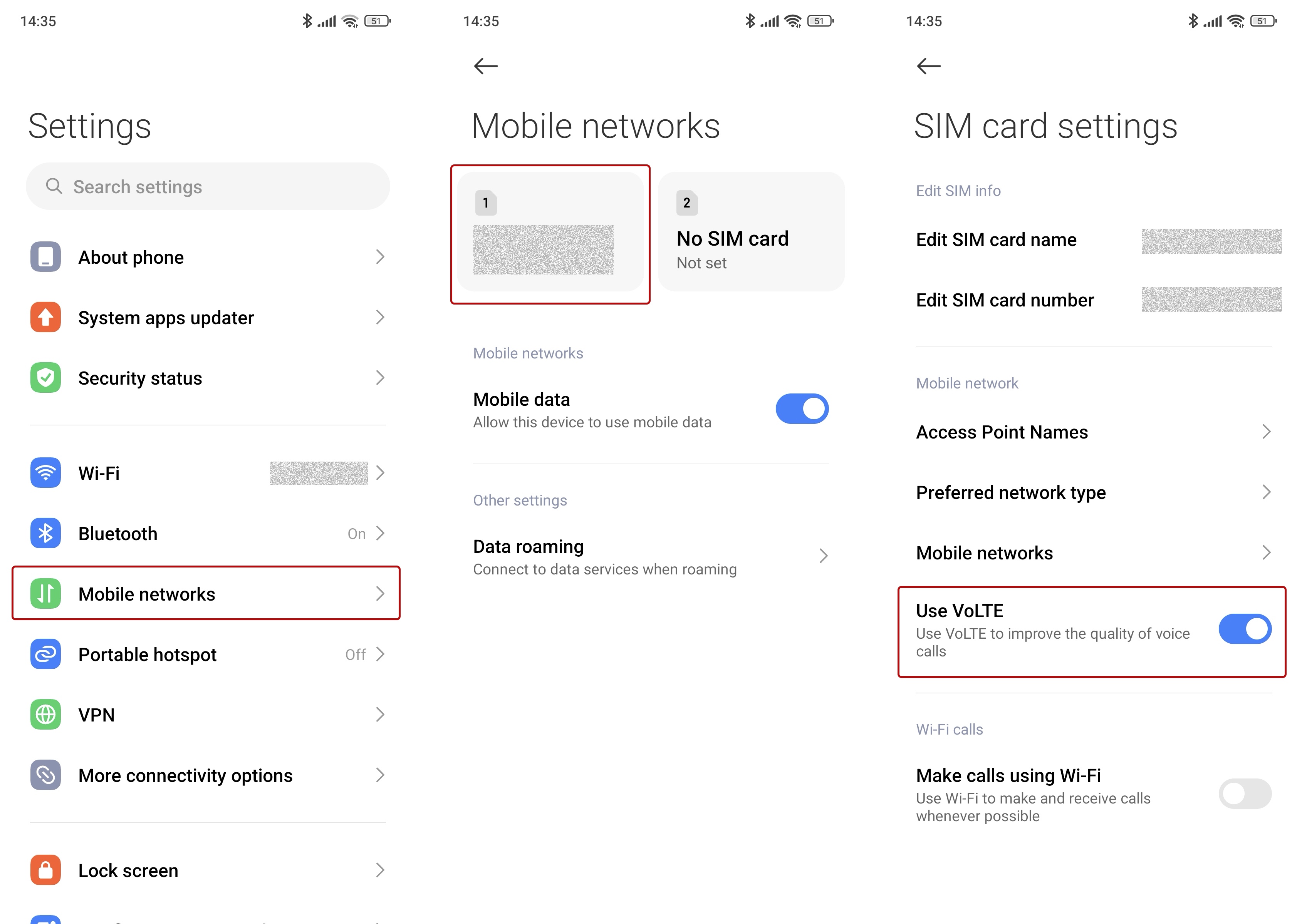 Disable VoLTE and make a test call