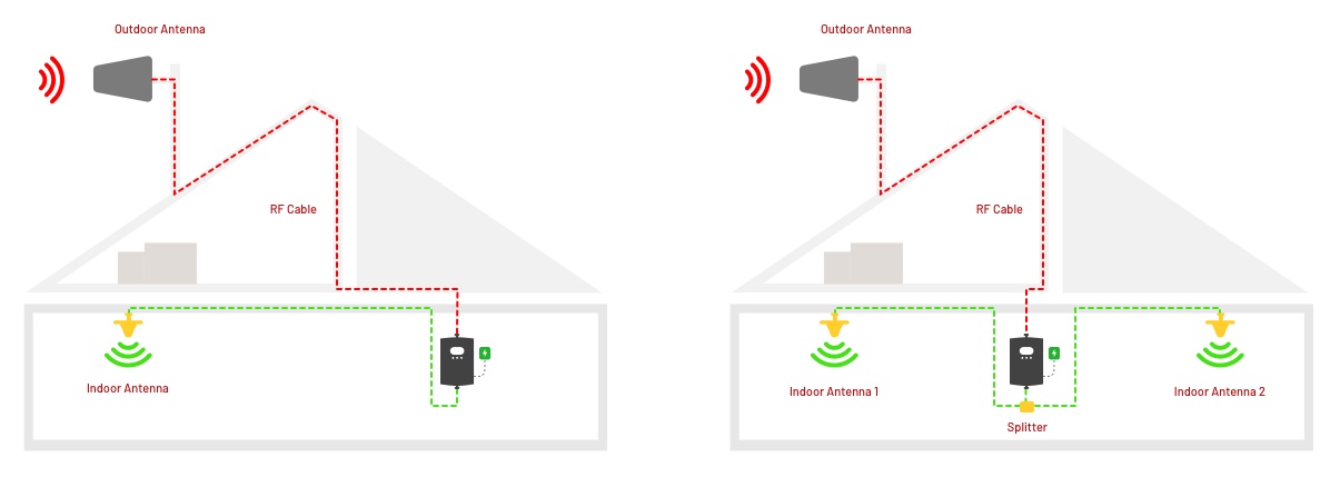 In order to improve indoor coverage you can try to adjust the position of the antennas so that they don't face any physical obstacle. If, having done so, the coverage is still insufficient, you can add another indoor antenna, which will be connected to the main unit with a splitter. Check out our accessories page for all the necessary equipment to enhance your signal booster setup.